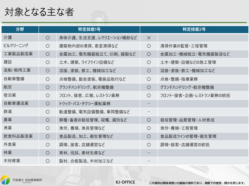 ※介護分野は特定技能2号の対象外で、別途「介護」の在留資格が存在します